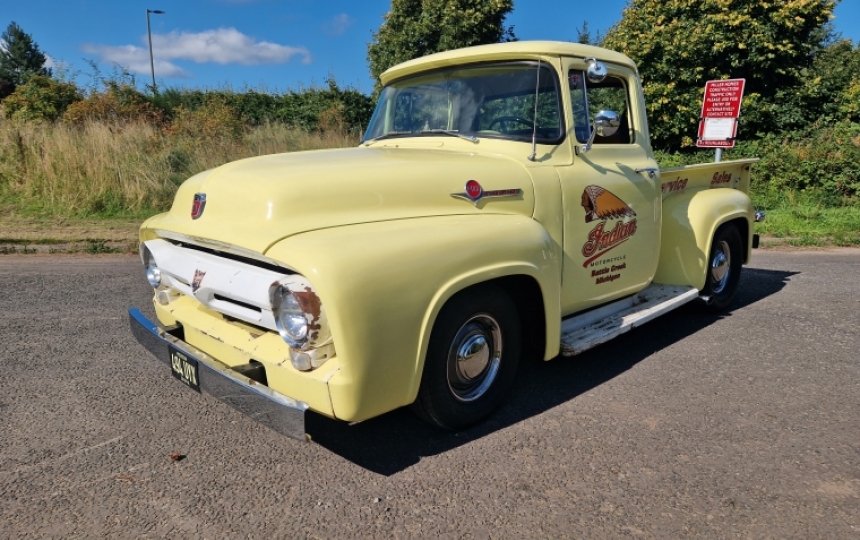 1956 Ford F100 Short Bed Pickup Truck. The owner has been around American cars for a long time and likes his stuff to drive properly. Hes spent a small fortune (dont tell his wife) on upgrading this truck. I drove it the other day and it drives very well for a 50s truck. Its used regularly and is well known around the Scottish Car show scene. Personally, I think he needs a check up from the neck up, for selling it as its so well sorted.....his loss could be your gain. He has the current V5.
