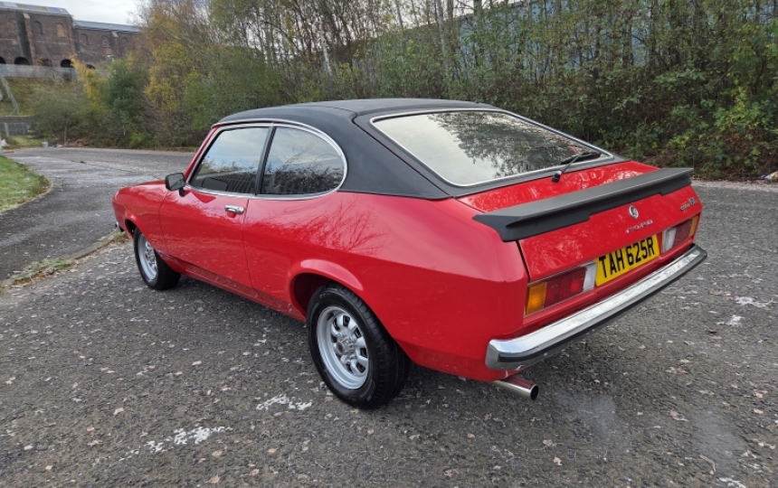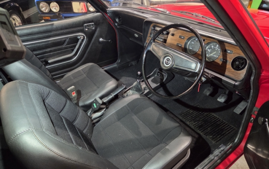 Body - MK2 Capri shell which looks exceptional. Body is all painted body colour underneath with only a very light coating of stonechip or similar. You can see all the detail and the finish underneath is very good. Paintwork up top is lovely. The car is Venetian Red, although it did start life as Brown but was changed during the restoration. All the trim, rubbers, headlights and bumpers are in very good order. Lots of newold stock parts were sourced for this car we are told. Black vinyl roof is lovely and looks to have been done during the restoration. We have two sets of keys for the car