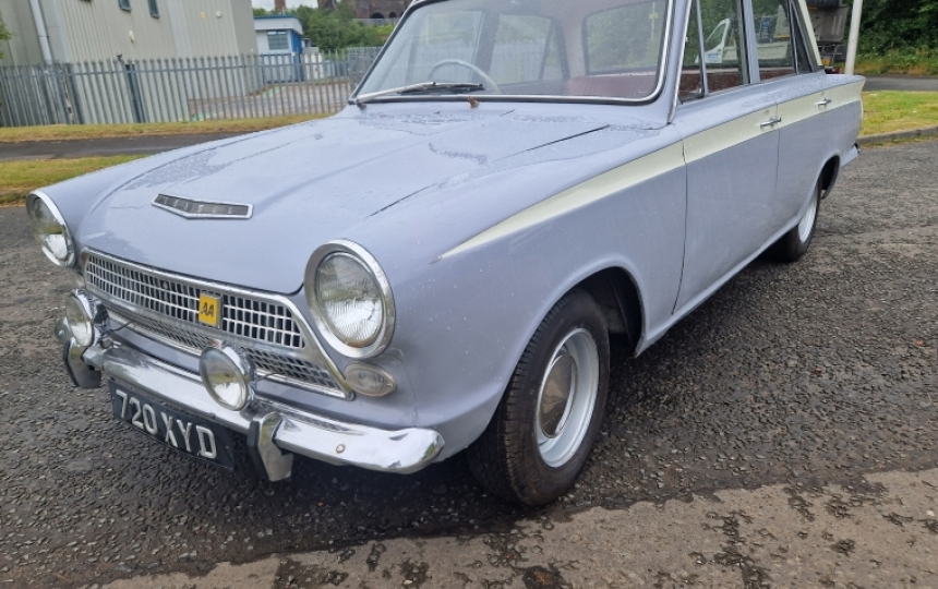 Ford Mk1 Consul Cortina 1500. First Reg 1964. Charming old car which starts runs and drives and appears to be very good mechanically. We have the current V5 here but no real history with it.