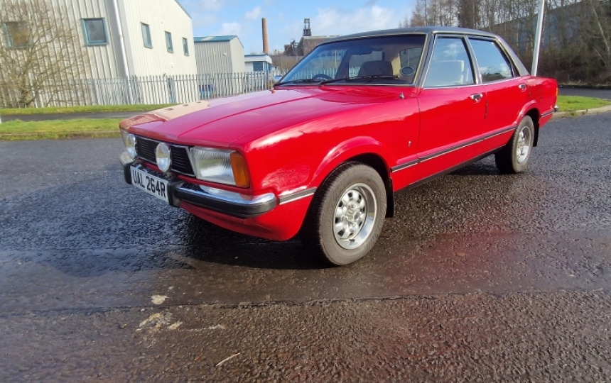 Selling on behalf of a customer this superb Cortina MK4 3.0 Ghia Automatic with only 28000 kms or 18000 miles from new. It was imported a few years ago from South Africa and is fully UK registered. Its an extremely original old car and also very rare being a 3.0 Ghia. There are no signs of it ever being welded or painted