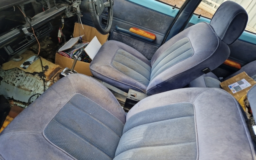 Interior - Blue Ghia Interior which will need tidied up or replaced. Currently no carpet in the car. Seats are just sitting in place.