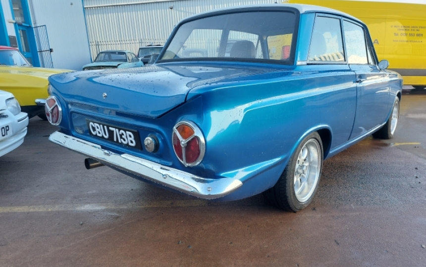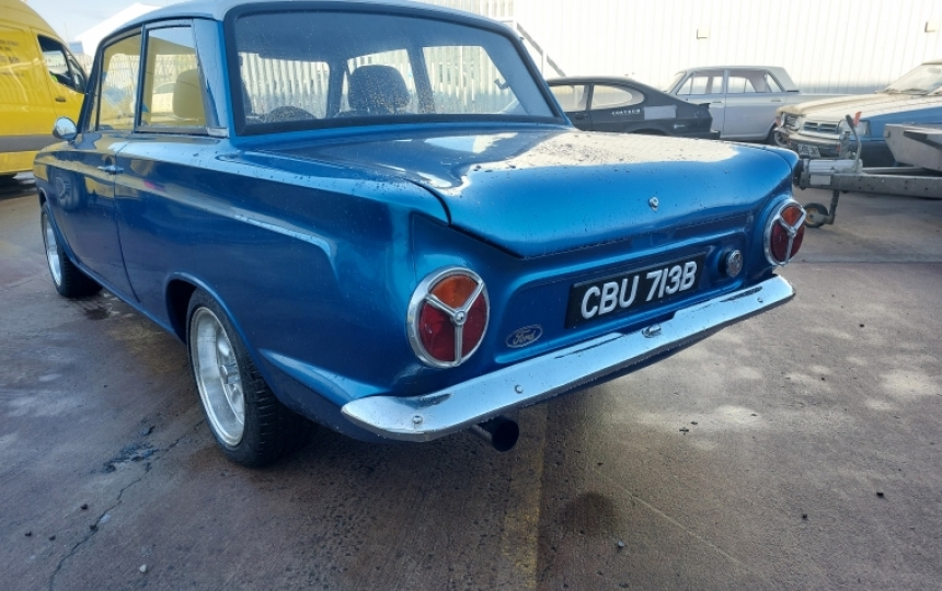 Body - Mk1 Cortina 2 Door shell. Original strut tops, inner wings, sills, arches, wings. Good straight car . Paintwork is very tidy. Minor bubbles on front of bonnet. Very solid underneath but has had  a couple of repairs over the years. Very tidy solid looking car.