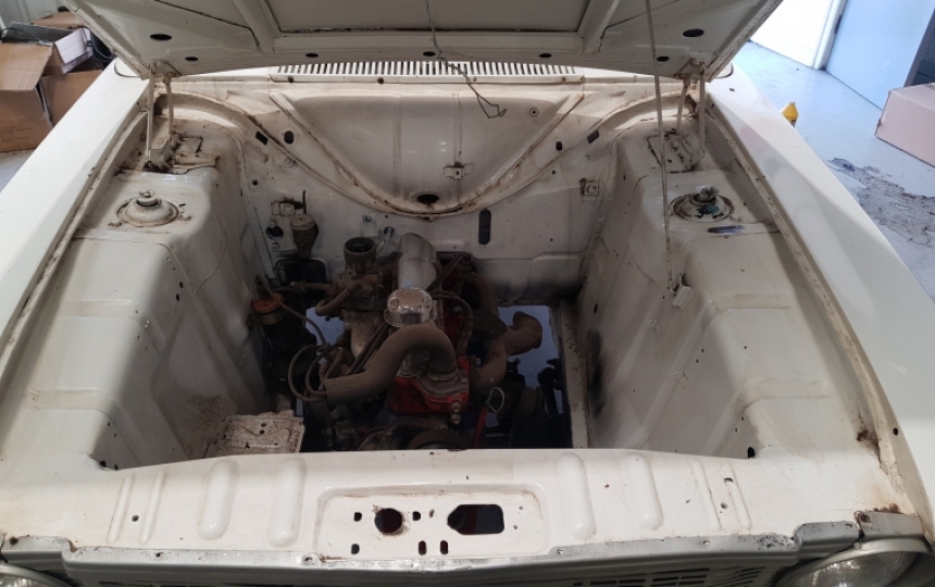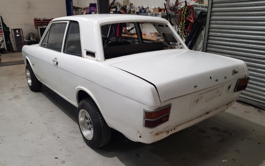 Body - 2 door MK2 Cortina export spec shell with extra strut top strengthening plates similar to 1600E and Lotus. Original and solid inner wings, arches, doors, bootlid, bonnet, wheel tubs, etc. Paintwork a bit scruffy due to age. Will need a couple of very minor repairs underneath on 1 outrigger and one rear wheel well. Overall though extremely solid and original for its age.