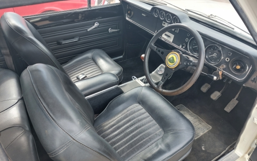 Body - 2 Door Lotus shell with all the correct extra strengthening plates in place. Good solid car which has been painted body colour underneath. its had a few repairs over the years but these are fairly minor. Its a very solid old shell. Panel gaps are not too bad at all and certainly no worse than when they left the factory. The car was taken back to bare metal and repainted a good few years back. There are some photos of it in the file. Paintwork in the main is nice but it has stonechip on bottoms of front wings, front panel and in boot. Lotus stripe looks to be the correct colour but not quite right.