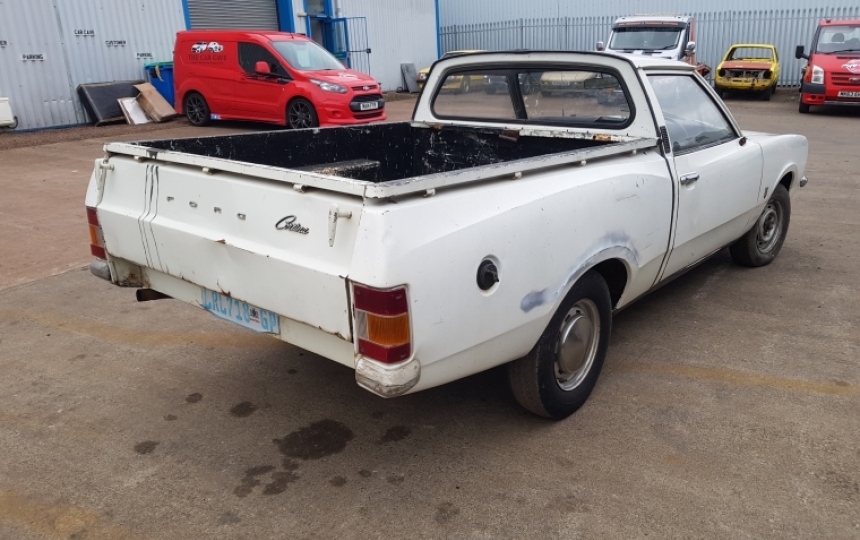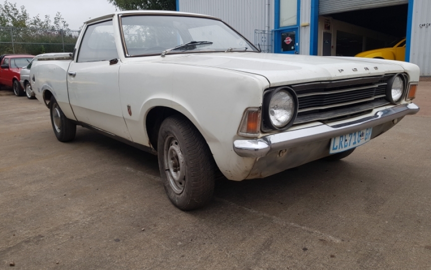 Ford Cortina 1.6 Pickup. This is factory built vehicle in South Africa with the rare styleside body rather than the later body similar to the P100. This truck has never been welded and in the main is very dry and solid but will need some repairs. Quite scruffy as it was a work truck. Was still in use prior to export