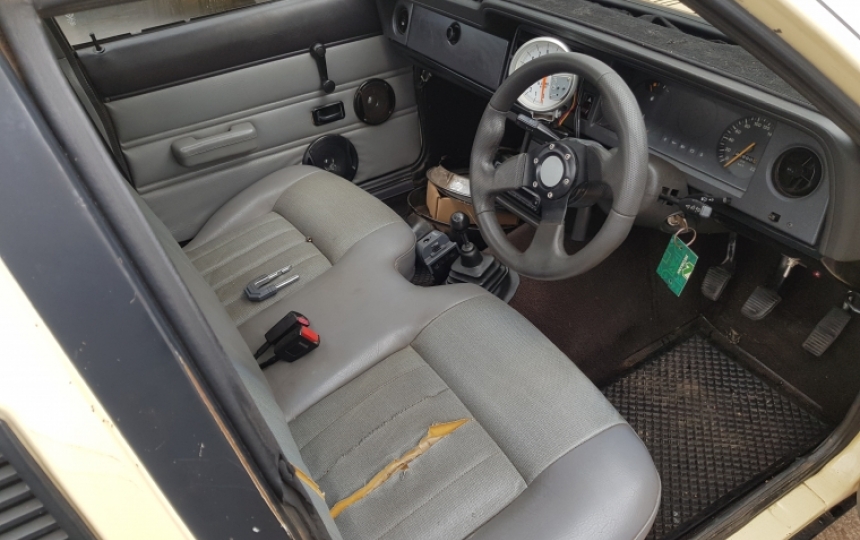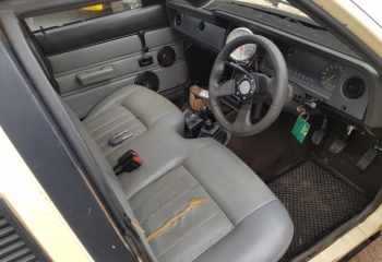 Interior - Good door cards, headlining and dashtop. Bench seat has a tear as can be seen in the pics. Additional rev counter and after market steering wheel are a bit naff and need removing.
