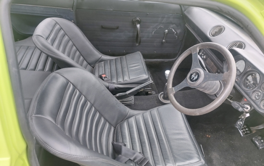 Interior - Period style semi bucket seats. Good dash top. UK 6 dial dash fitted but needs all wired up. RS steering wheel. Door cards look a bit DIY and will need replaced. Headcloth is tidy enough but not the original type.