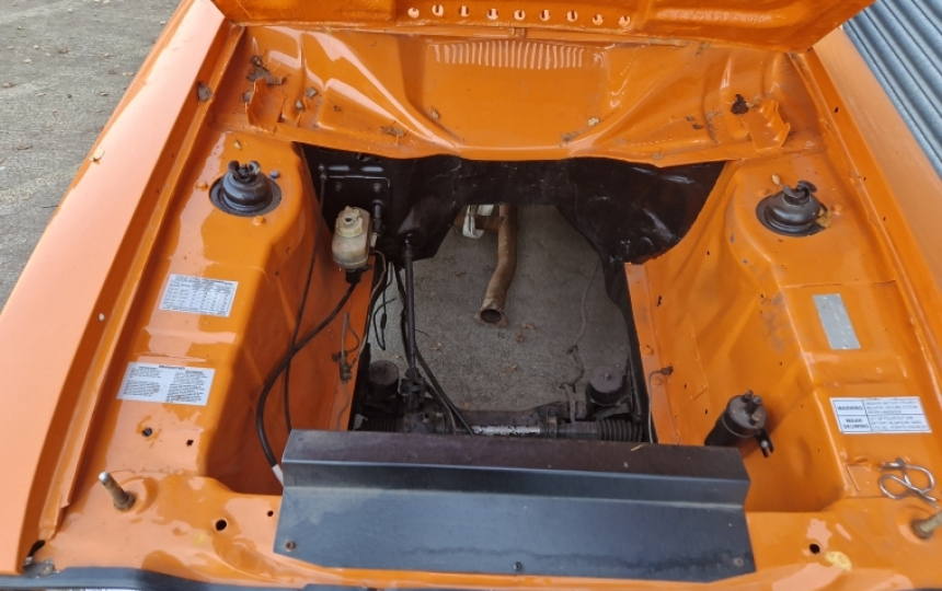 Body - Early Mk1 Escort 2 Door. Previously been used as a track / race car running a V6. The shell is pretty solid all round. Good original inner wings, pillars, sills, rear arches, Will need minor repairs on front floors. The bonnet is fibreglass and probably needs replaced, as will the questionable front spoiler. Heater bubble will need reinstated. Paintwork is not too bad at all.