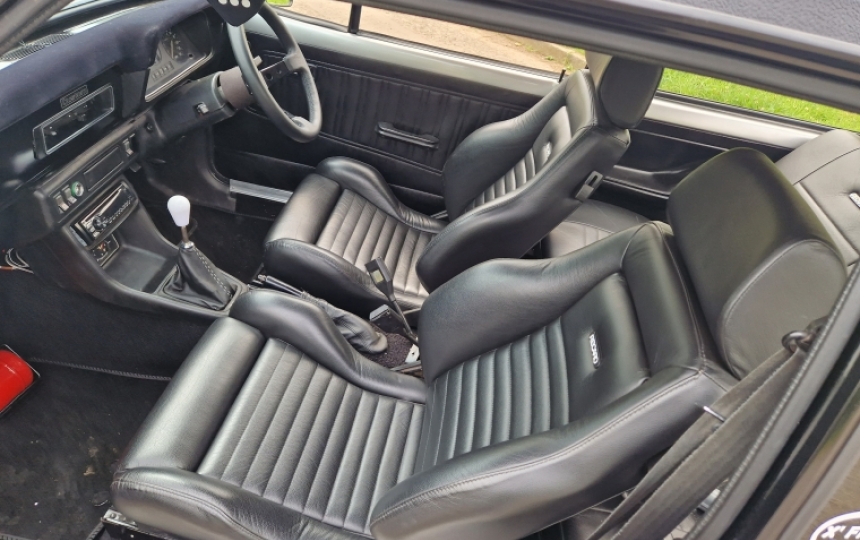 Body - Mk2 2 Door which started life as a ghia. Solid from front to back. Strut top number clearly showing. Underneath has been stripped back and painted at some stage. Showing a wee bit of wear on the paint, but no rot, as the car was used. Paintwork is very nice. Vinyl roof really sets it off. Good bumpers, mex front spoiler, rear boot spoiler, 1700 Sport decals, Small scrape on nsr quarter. Has had a few repairs in the past underneath but they are all solid. This is a really good looking car in this colour combination.