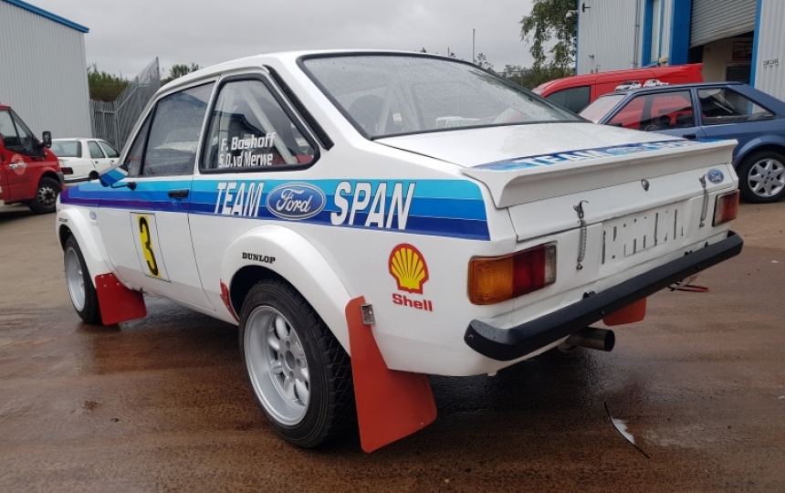 Body - 1600 Sport shell, Very solid underneath, good floors, chassis, sills, doors. Original strut tops. Paintwork is tidy with SA Team Span livery. Rally arches, strut brace. Roof vent, rear firewall. Floor has skid plates from chassis rail to outer sill. Full cage which goes right through to strut tops.