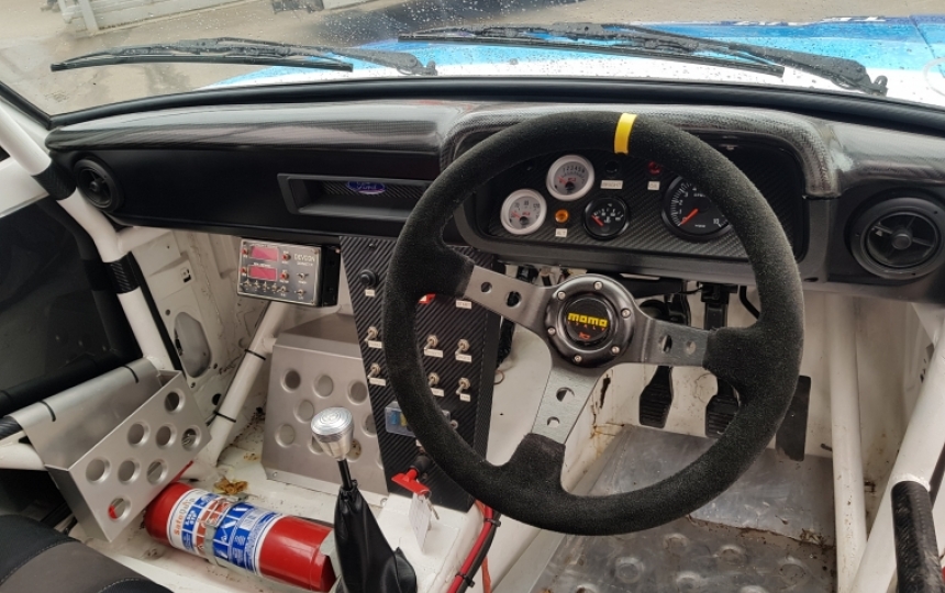 Interior - Bucket seats and harnesses (not in date), uprated dash, switch panel, navigator footrest, timer.
