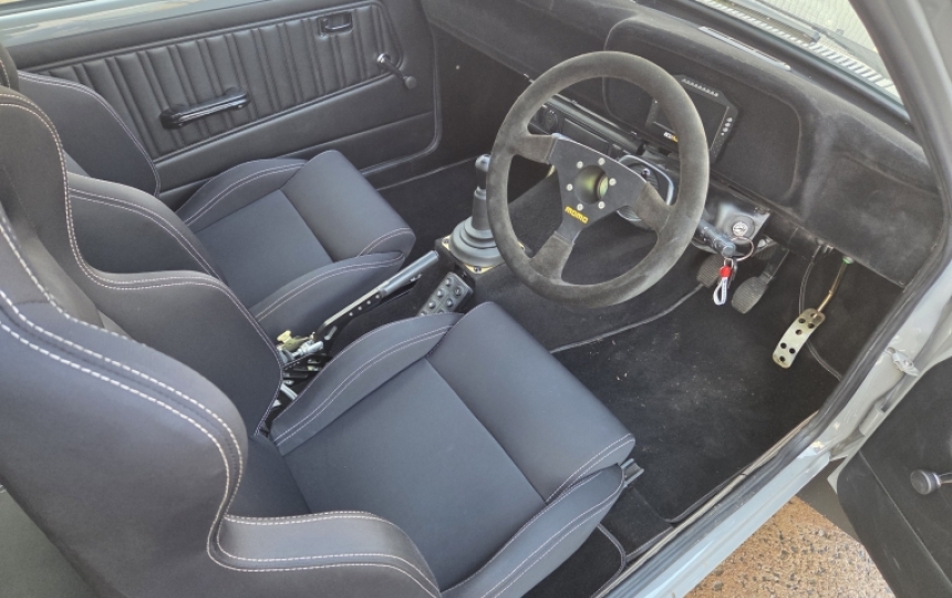 Mechanics - 2.0 Vauxhall red top engine with dry sump, Kent Cams, Throttle bodies, Lightened flywheel, competition clutch, uprated 5 speed type 9 gearbox. Coil overs front and rear, Alloy hubs, fully rose jointed front end, Vented discs and AP racing calipers all round, fly off hanbrake, bias pedal box, power steering, watts linkage, 5 links, LSD, rally tank in boot, fuel pumps, GRP 4 dry sump tank, GRP4 radiator,