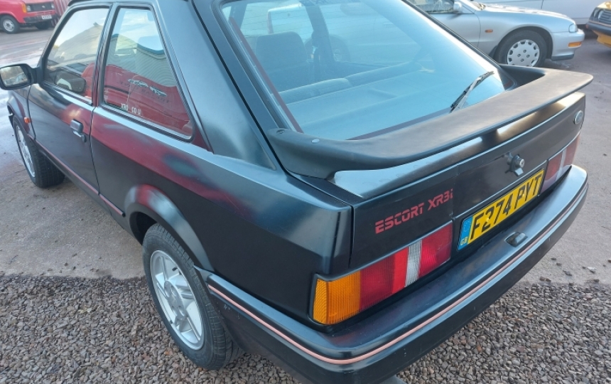 Ford Escort XR3i unfinished project. Last on the road in 2016. The car starts runs and drives and most of the work required has been done but the car will need repainted to finish it. We have the V5 but no real history. The car has a CAT D marker against it from April 2000. We have no idea why. Please bear in mind at that point the car would not have had a very high value and would not have taken much to be uneconomical to repair.