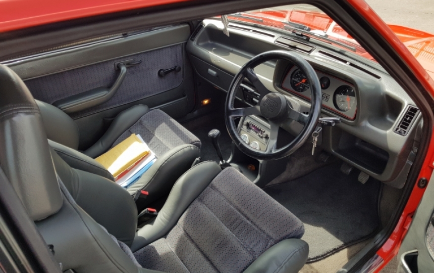 Interior - Uncracked dash. Does have on small storage dimple on passenger side but not bad. RS fourspoke steering wheel with motorsport boss, speedo and revcounter rearranged from standard, standard centre console with PSRT radio cassettte player. Cassette player doesnt work. Standard grey carpet, Escort MK5 RS2000 seats recovered with grey leather squabs. Rear seat and door cards covered to match the front seats.Good rear quarter cards and parcel shelf.