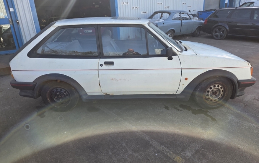 Ford Fiesta 1.6 XR2. 1989 F reg with 80,000 miles. This car has only had 2 oowners and looks to have last been on the road in 2010. Since then it looks to have been stored and allowed to deteriorate. Its probably only a spares car or a very brave restoration. we do also have a LHD 1.1 car in white which is a good shell.