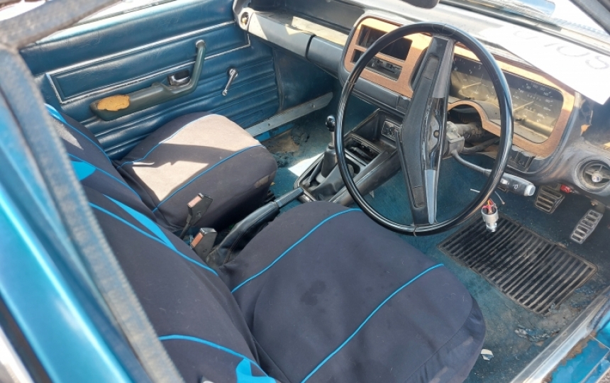 Interior - All there but scruffy. Seats are split, door cards are scruffy as is the carpet and headlining.