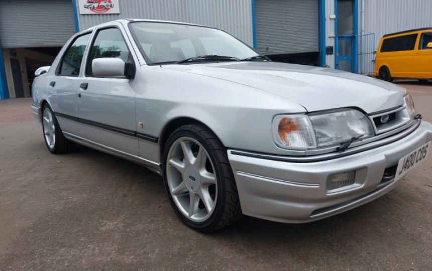 1994 Ford Sierra RS Cosworth 4x4. This car was off the road since about 2009 and has recently had thousands spent on getting it back on the road. It comes with an MOT till September 2022 and is ready to drive away. Ive not seen many Silver ones and I believe its quite a rare colour. The car is showing 116000 Miles. We have a huge history file of receipts which includes everything  that was spent recently.  We have the V5 here and two sets of keys.