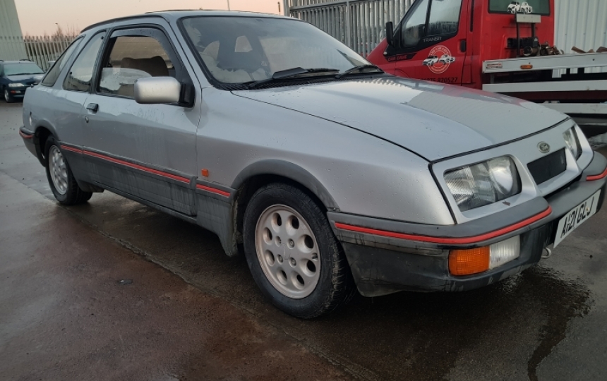 Ford Sierra XR4i. Car starts runs and drives and was last used on the road 2018. Car is totally complete but would benefit from a restoration. Has had a bit welding in the past but overall looks fairly solid, but scruffy.Good basis for a project
